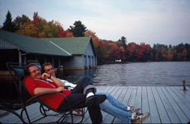 Adirondack chair on the dock, with his buddy Conrad, who often worked at the